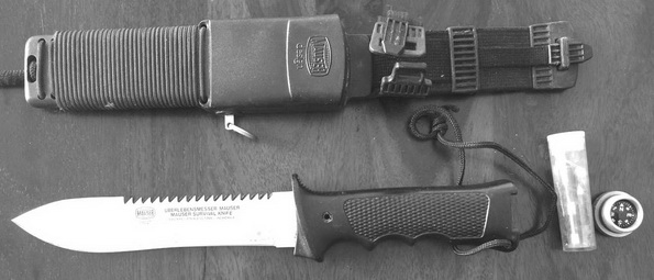 — ножны с кармашком для разных мелочей (иглы, ниток, точильного камня и пр.). Кроме этого в ножны иногда монтируют сигнальное зеркальце с таблицей сигналов.