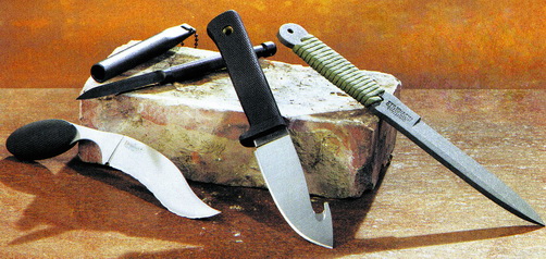 В ассортимент продукции компании Cold Steel кроме ножевого товара хозяйственно-бытового и спортивного назначения, входит и различное холодное оружие. На первый взгляд, и то, и другое выглядит вполне ординарно. Более внимательное знакомство только подтверждает первое впечатление. Внешне изделия Сold Steel, особенно всевозможные алебарды (Hellebarde), боевые топоры (Bad Axe), чеканы (War Hammer), томагавки (Frontier Hawk) и малые саперные лопаты (Special Forces Shovel), напоминают скобяной товар советского «ширпотреба». Характерное черное покрытие металлических частей, некрашеное дерево черенков и выступающие гайки наверший, лишь усиливают впечатление дежа-вю. Не внушает доверия и high-tech-дизайн новоделов оружия различных этнических культур. Все эти «ногалес», «кхукри», «панги» с покрытыми эпоксидным лаком клинками и рукоятями из резины (Kraton), «ассегаи» в пластмассовых ножнах или African Walking Stick из полипропилена — и выглядят, и являются типично американским китчем.