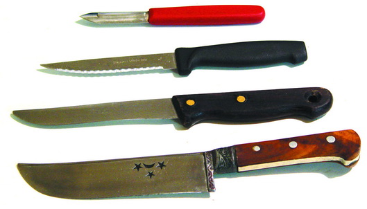Впрочем, что нам чужое мнение… Чай не в заморских да забугорных ресторанах под пять звезд линька у нас… Статус свой показывать не перед кем. Вокруг такие же простые граждане. Не крадут, не грабят, живут на пенсию или зарплату. Мои четыре ножа — для быстрого и качественного приготовления ужина (обеда) для себя любимого, родни и редких гостей. Этого набора вполне достаточно (при наличии кухонного комбайна, сильно упрощающего и ускоряющего приготовление ингредиентов для первых и вторых блюд и салатов), при том, что в подавляющем большинстве случаев мясо и рыба приобретаются уже фасованными, в виде приготовленных для дальнейшей обработки стейков, шницелей, куриных грудок и т.п…