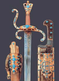 Основным оружием рыцаря в то время были обоюдоострый меч с плоской рукоятью и длинное с четырехгранным наконечником копье.