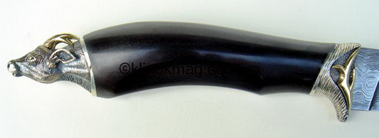 В данном изделии использован дамаск украинского производства (изготовил кузнец П. Федоряка). Дамаск имеет так называемый «дикий» рисунок, что подчеркивает природное происхождение косули, которая является одним из представителей диких животных.