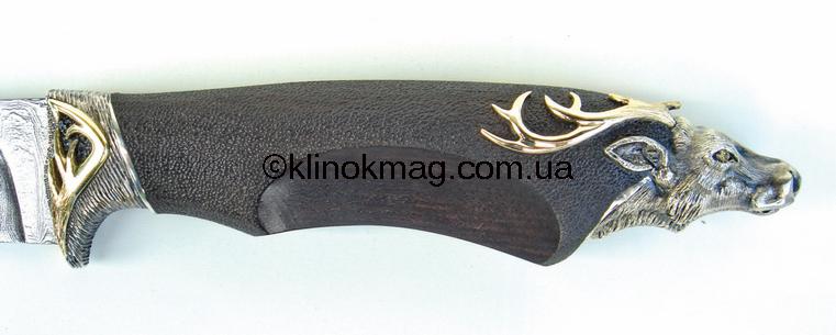 Еще одним ножом на «звериную тематику» стал нож «Олень». Он изготовлен по заказу одного нашего постоянного клиена, который пожелал, чтобы навершие его будущего ножа было выполнено в виде головы благородного оленя.