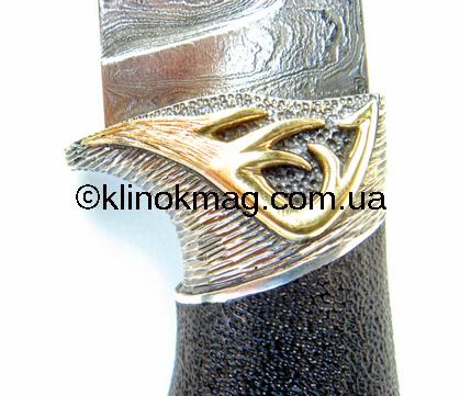 Отличием от предыдущего изделия явилась также и рукоять. Верхняя часть ее была выполнена в технике ретуширования. Благодаря этому рукоять удобно лежит в руке и не проскальзывает даже в мокрой ладони.